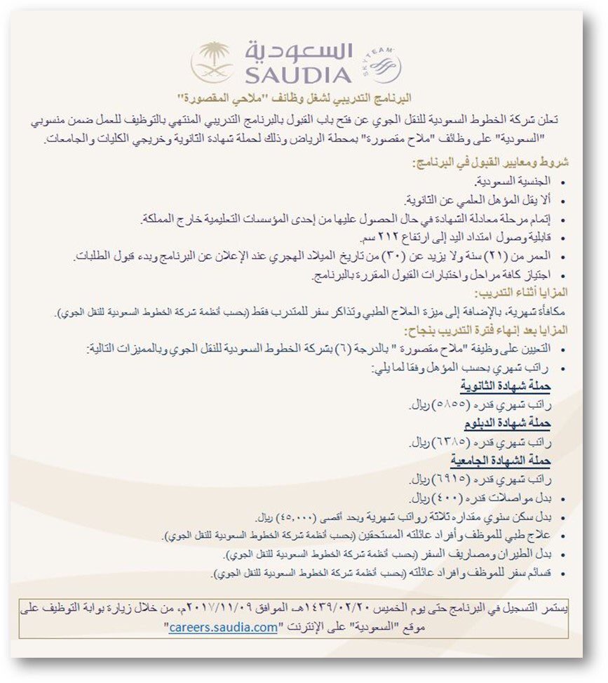 عبدالله الوثلان On Twitter للسعوديين فقط وظائف الخطوط السعودية تعلن عن البرنامج التدريبي لشغل وظائف ملاحي المقصورة المنتهي بالتوظيف