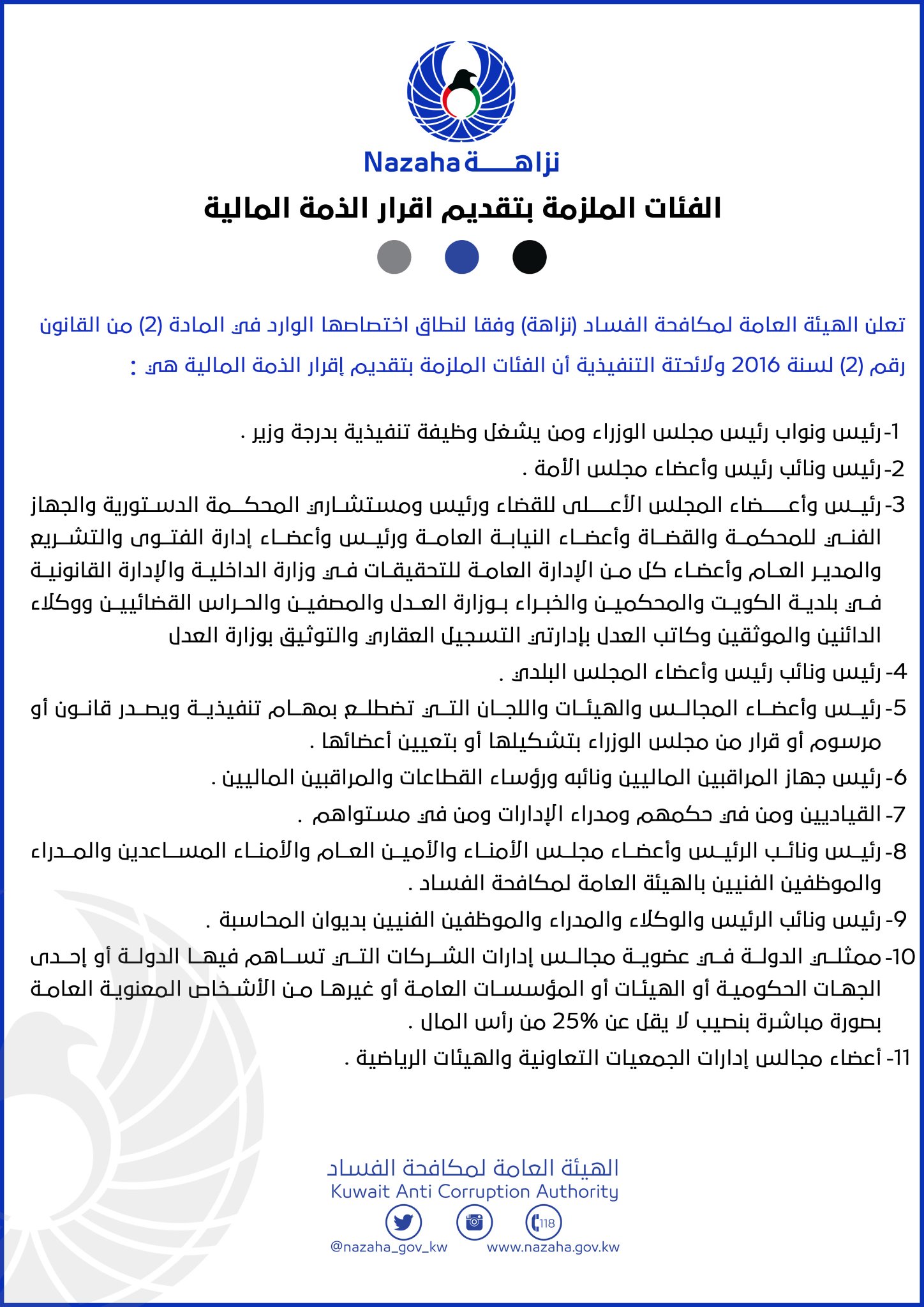 هيئة مكافحة الفساد A Twitter الفئات الم لزمة بتقديم إقرار الذمة المالية نزاهة الكويت