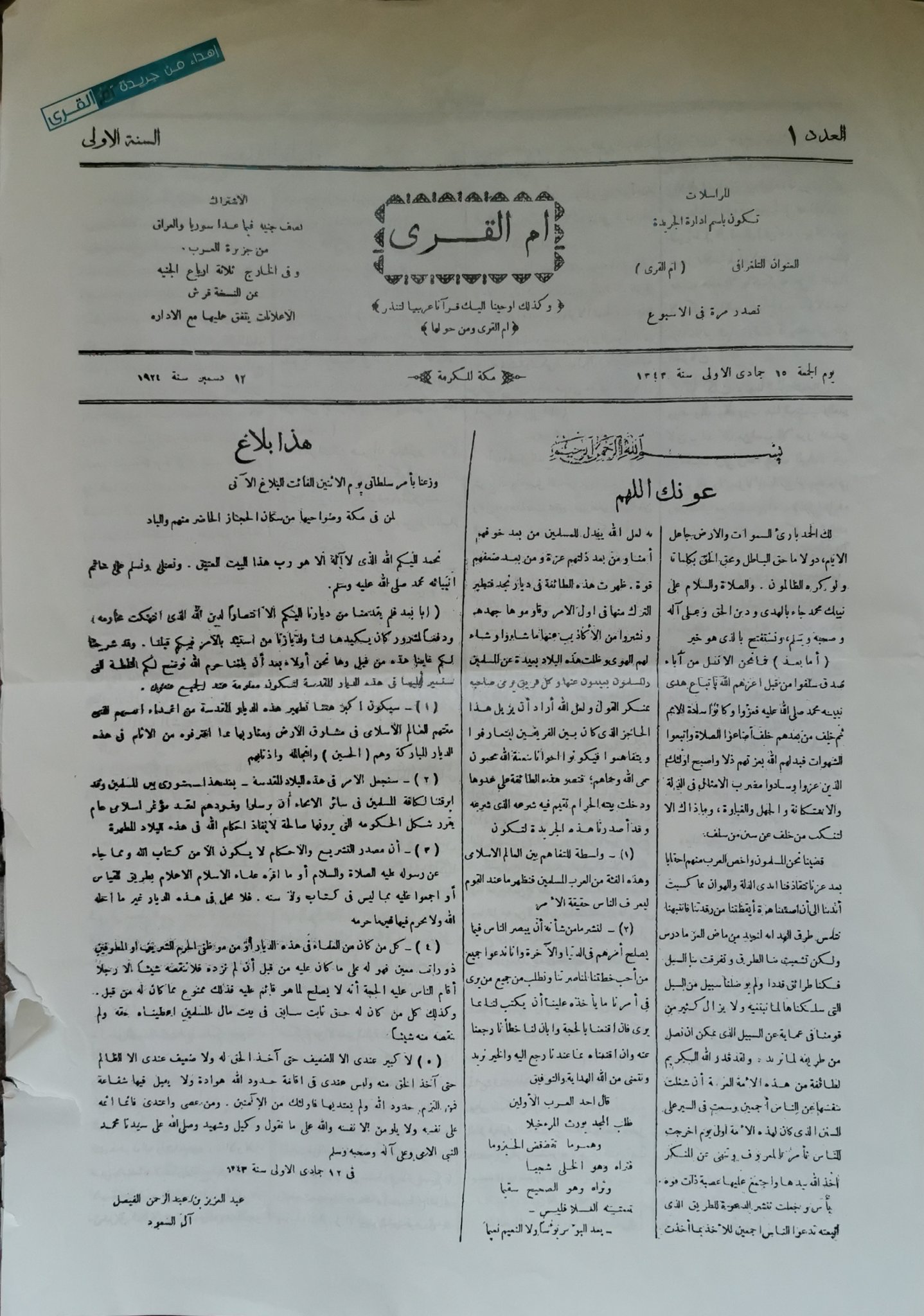 جريدة أم القرى A Twitter العدد الأول من جريدة أم القرى أم القرى 98عام من العطاء
