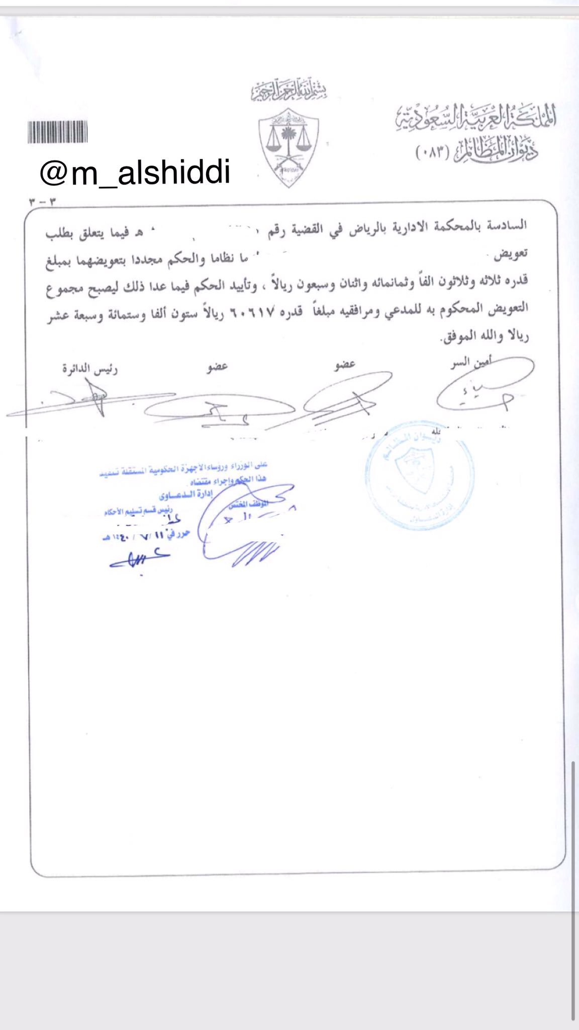 محمد عبدالله الشدي Di Twitter استلمت اليوم حكم نهائي من محكمة الإستئناف الإدارية في الرياض يقضي بإلزام الخطوط السعودية Saudi Airlines بتعويضي وأفراد عائلتي بمبلغ 60 617 ريال بسبب تأخير رحلتنا إلى نيويورك 21 ساعه