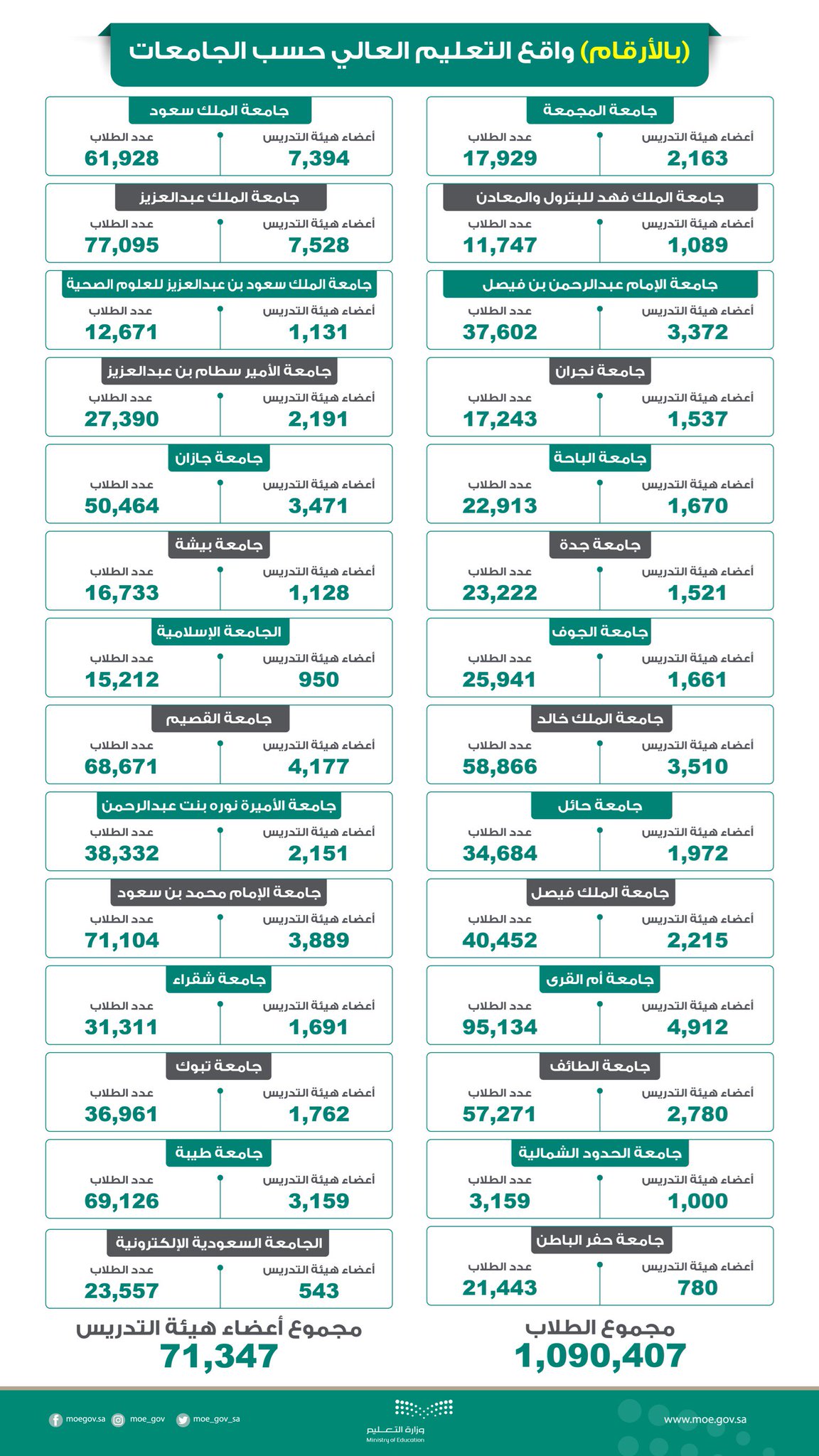 وزارة التعليم جامعي On Twitter بالأرقام واقع التعليم العالي من حيث أعضاء هيئة التدريس والطلاب بحسب الجامعات مستقبل الجامعات السعودية