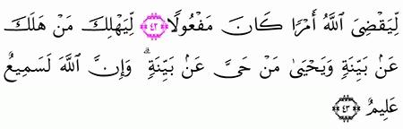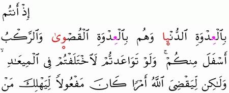 مقارنة الآيات بالروايات سورة الأنفال الآية 42