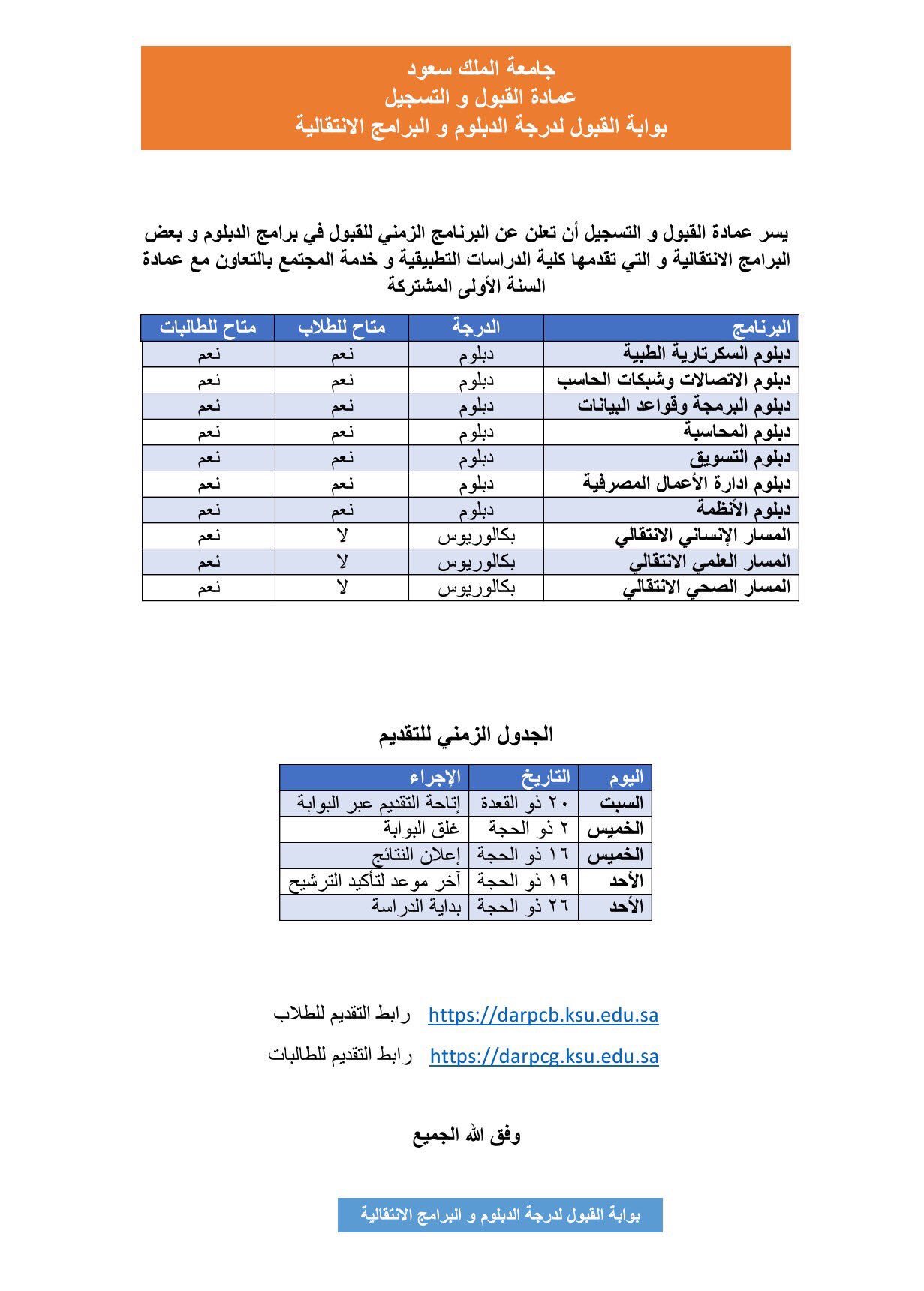 وافي بن عبد الله Auf Twitter تم فتح باب التقديم على برامج الدبلوم والبرامج الانتقالية بجامعة الملك سعود طلاب Https T Co Jursd58laf طالبات Https T Co Xhtznucihx Https T Co Cb8dat47i3