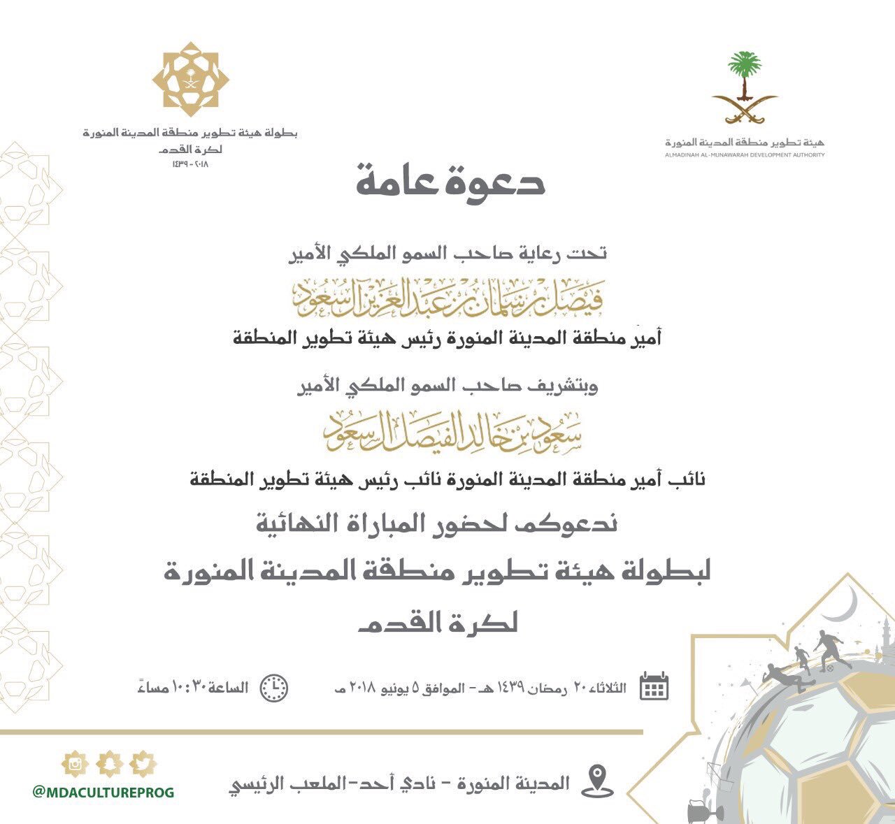 هيئة تطوير منطقة المدينة On Twitter دعوة عامة لحضور المباراة النهائية لـ بطولة هيئة تطوير منطقة المدينة الرمضانية لكرة القدم
