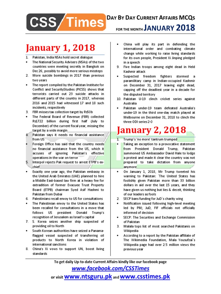 Day By Day Current Affairs January 24 2020 Mcqs For Css Pms