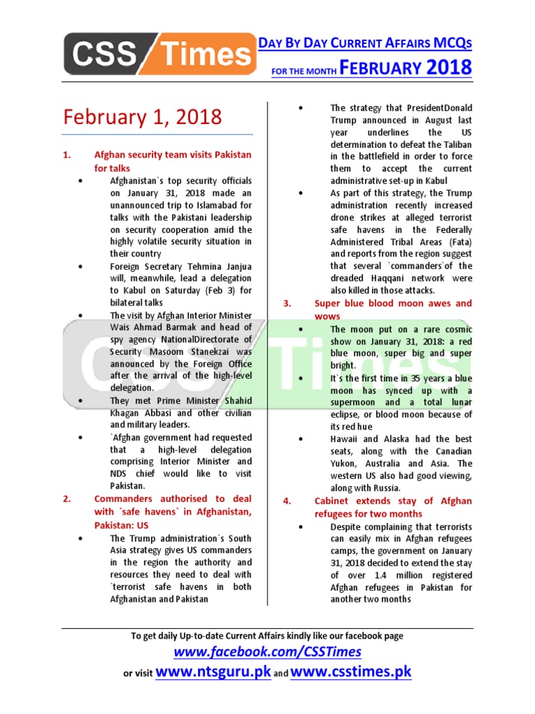 Day By Day Current Affairs February 2018 Taliban Pakistan