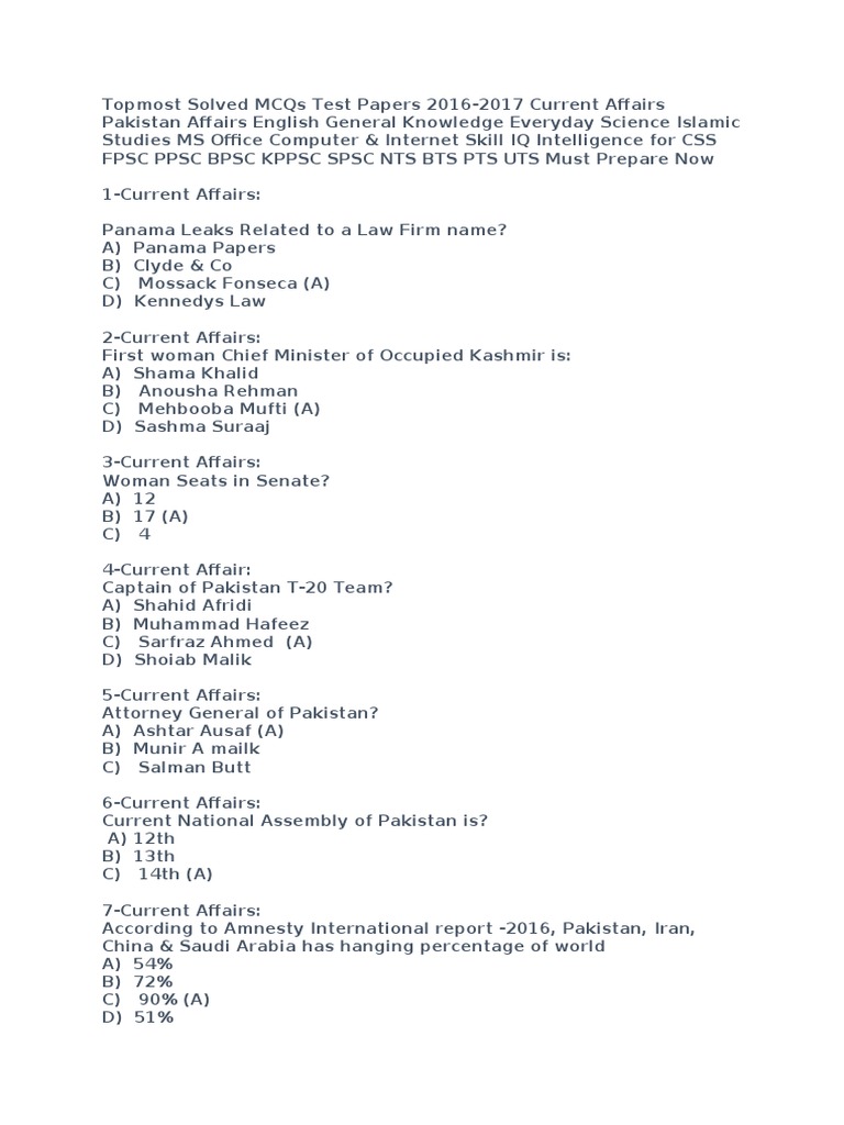Pakistan Current Affairs 2020 Mcqs And Quiz Pak Mcqs Pk