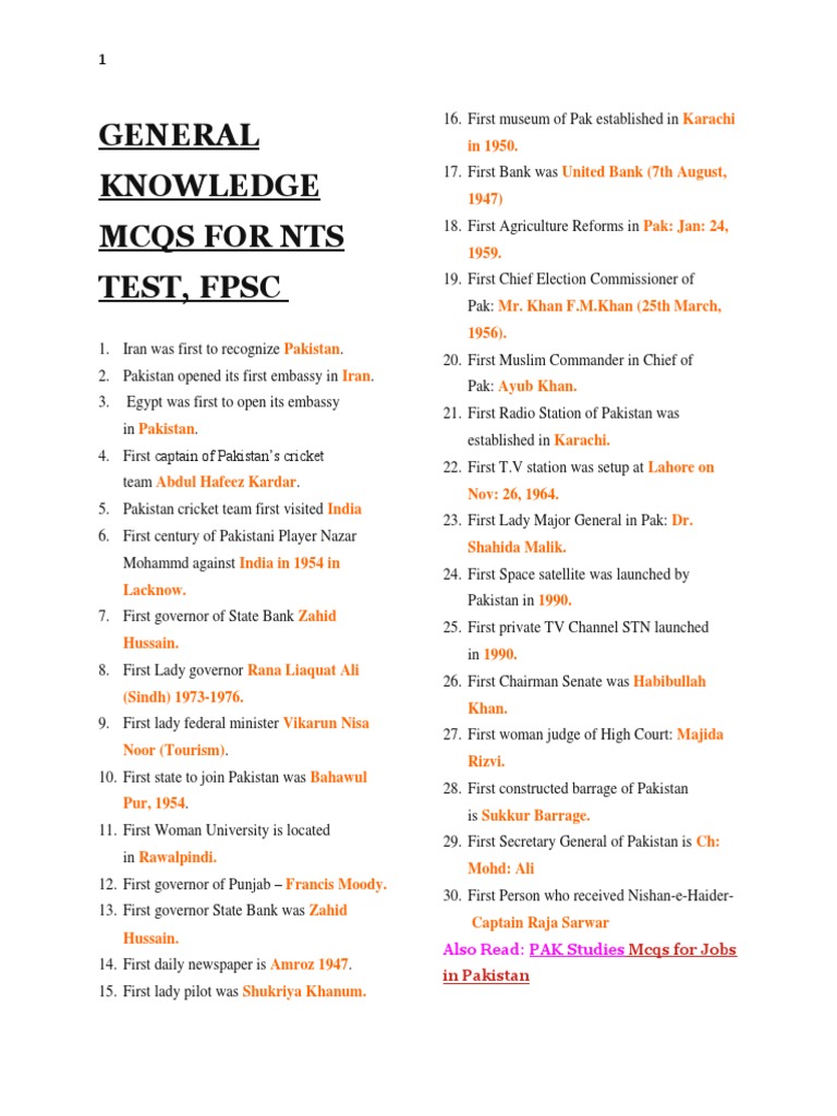 General Knowledge Mcqs For Nts Test Docx Pakistan Vitamin